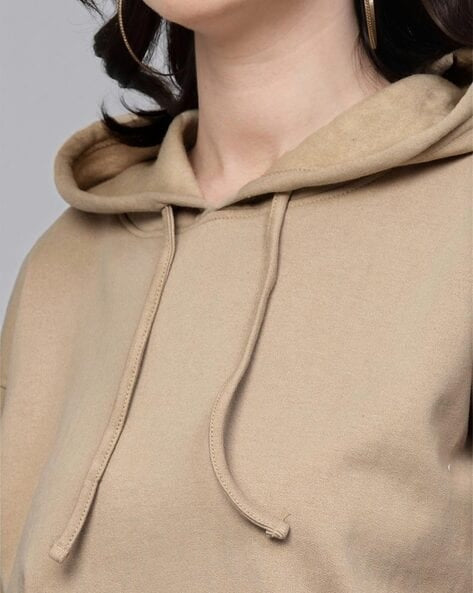 Beige Basic Kangaroo Hoodie for Women