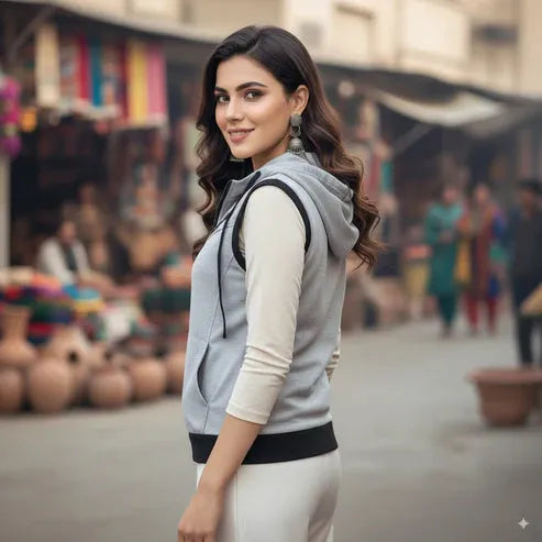 Grey Sleeveless Hooded Zipper
