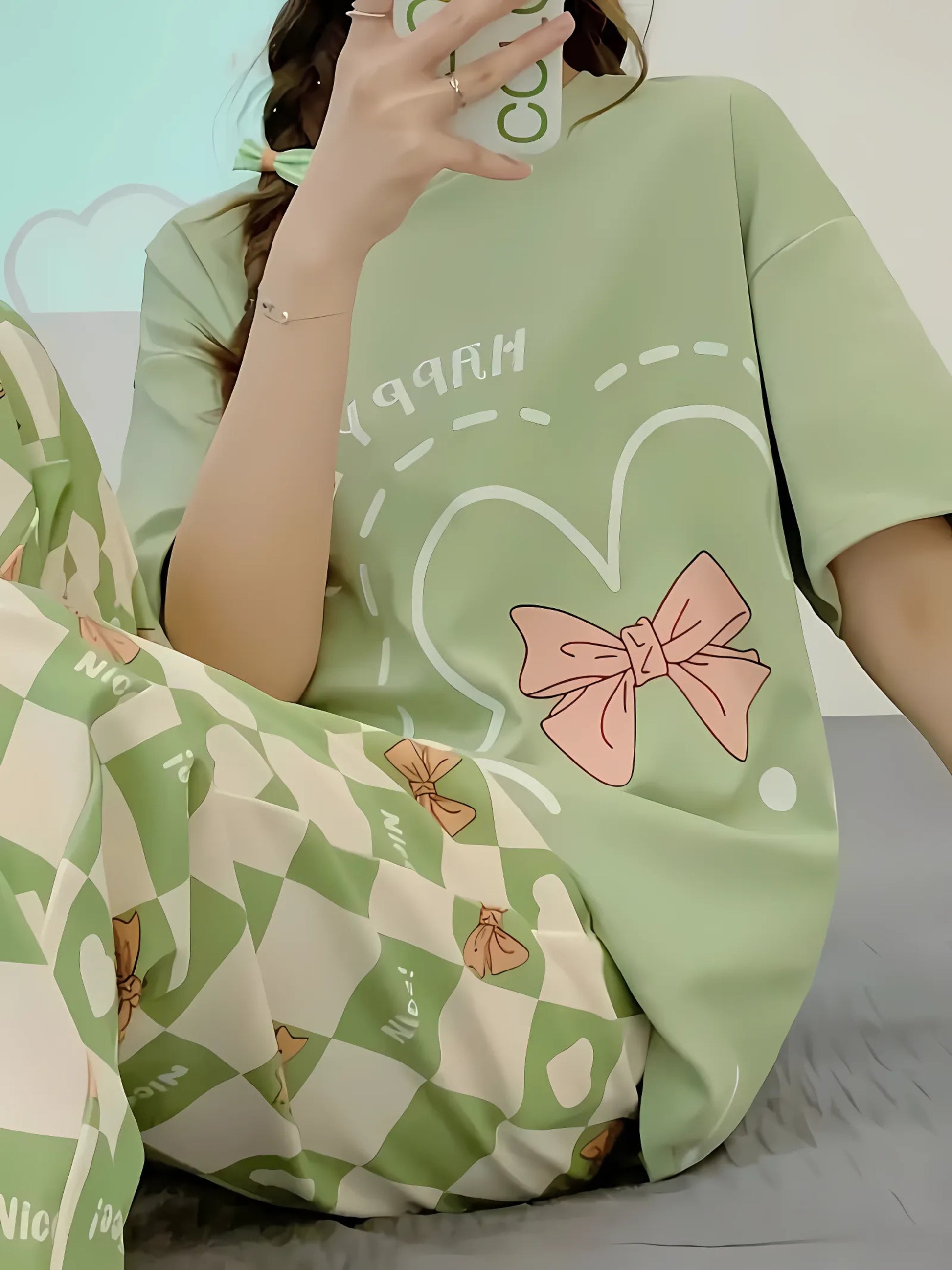 Olive Green Printed Night Suit